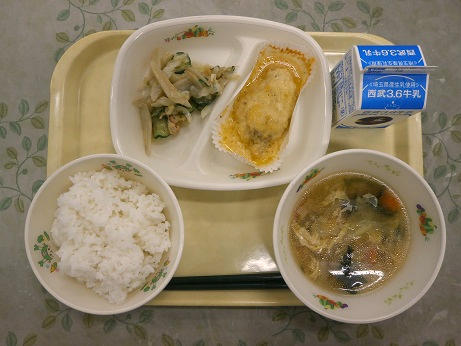 今日の献立 牛乳 ご飯 鶏肉のマヨネーズ焼き 大豆の磯煮 なめこ汁| 2025/10/15 |  |   | by:給食室 |