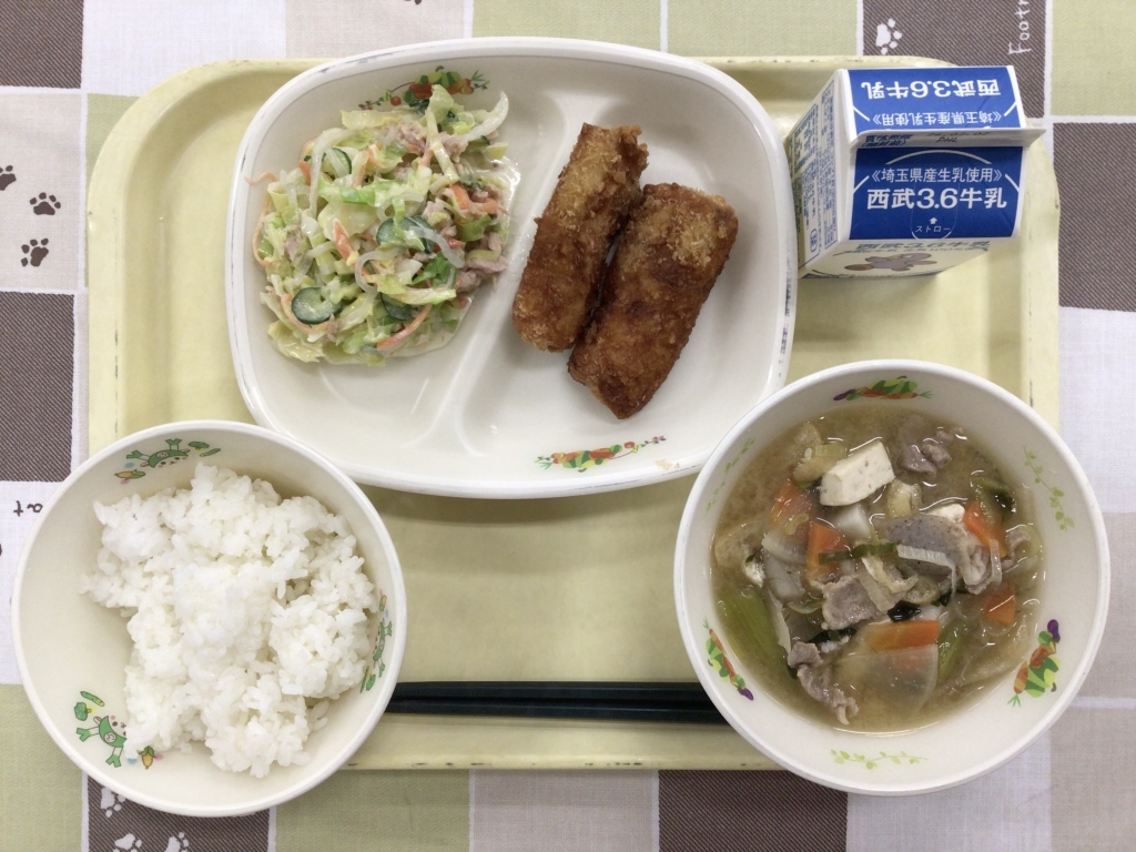 今日の献立 牛乳 コッペパン いちごジャム ちくわの磯辺揚げ バナナ カレーシチュー  今日の献立 牛乳 ご飯 生揚げの中華煮 蒸ししゅうまい 五目スープ 今日の献立 牛乳 深谷ねぎたっぷりうどん 深谷レンガパンケーキ ツナとひじきのサラダ みかん | 2026/01/23 | |  | by:給食室 |