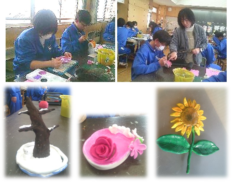 1年生の美術の授業は、2学期から制作していた粘土の作品が完成に近づいています。