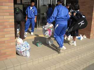 本日(10日)の朝、本年度第1回目の「アルミ缶・エコキャップ回収」を奉仕委員