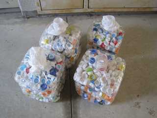 多くのアルミ缶やエコキャップが集まりました。御家庭で集