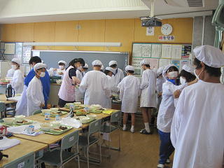 <1年生の給食準備の様子>