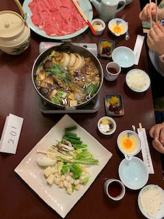 夕食はすき焼き。京都のすき焼きは関東とはちょっと作り方が違うね。