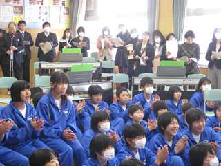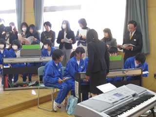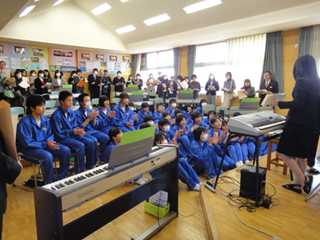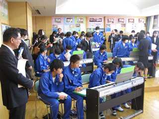 北部地区の小・中学校の先生方にお集まりいただき、公開授業として、1年生の音楽科の授