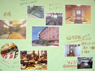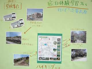 今、2年生の廊下には、「宿泊体験学習のコース・宿舎等の説明」MAPが掲示され
