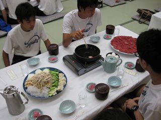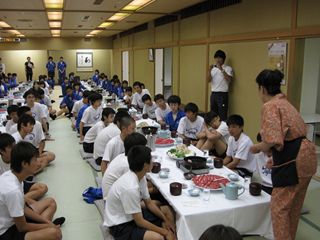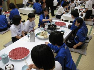 には、充実感がありました。その後、夕食になりました。すき焼きを元気に食べる生徒