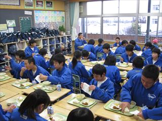 ★今学期最後の給食を味わっている生徒とセレクトデザート