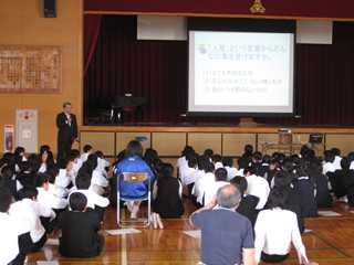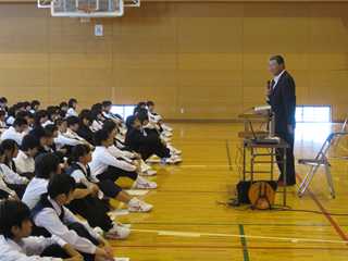 今週は、前期人権週間の期間であり、本日(29日)は、人権集会を行いました。特に、集会では「人権講話」として、講師に深谷市人権擁護委員の剣持 昭夫 先生をお招きして、「命を大切にすること」と題して、ご講演いただきました。