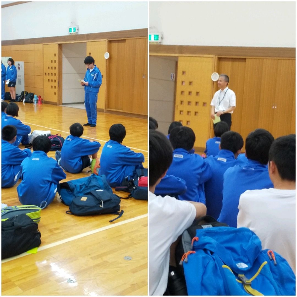 あいにくの雨の中ですが、みんな元気に集合しました。出発式はみんな静かに集中して臨めました。