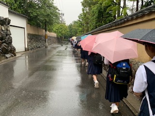 今日の京都は大雨になってしまいました。ですが、皆元気にお世話になった旅館を後にし、