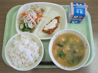 発芽玄米入りご飯、味噌汁、チキン南蛮、切り干し大根のサラダ、牛乳