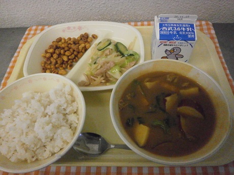 今日の給食の小江戸カレーは、小江戸”川越市”の特産品、さつまいもを使ったカレーです。