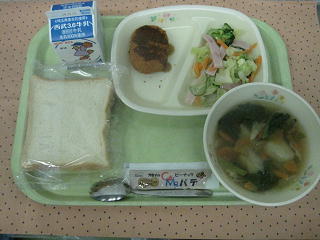 野菜コンソメスープ チーズサラダ 牛乳