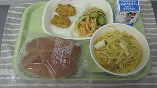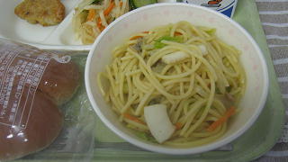 春キャベツとあさりのスパゲッティ 黒パン ナゲット