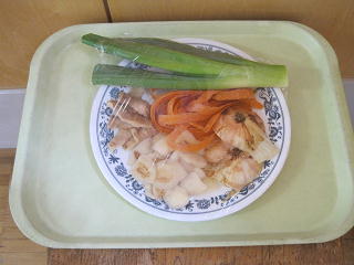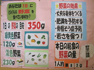 給食室の前に、1日の理想の野菜の量を記載した掲示をしました。