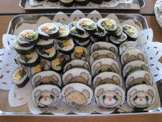 メニューは、苺クリームサンド、のり巻き、からあげ、エビフライ、たこやき、フライドポテト、フルーツの盛り合わせ、通常献立の主菜、汁物、サラダ、牛乳です。