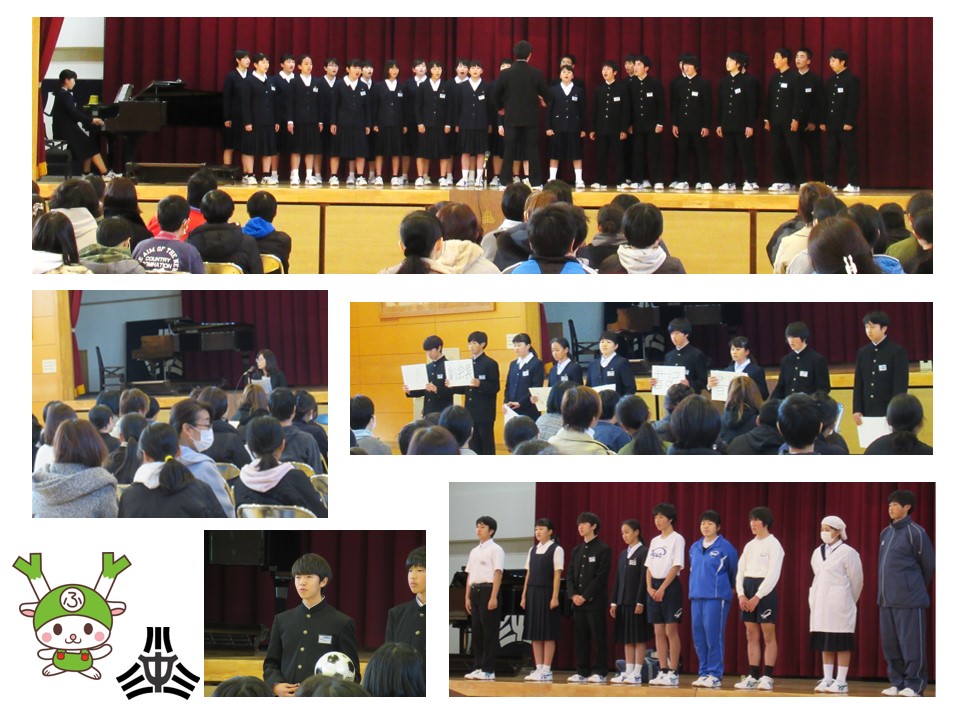 説明の後半には、授業を終えた校歌歌唱隊が豊里中学校校歌を披露しました。