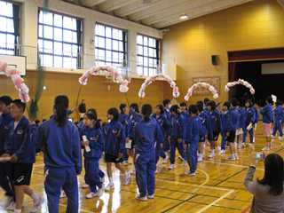 はじめに、1年生を2・3年生が拍手で出迎えた後、