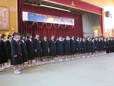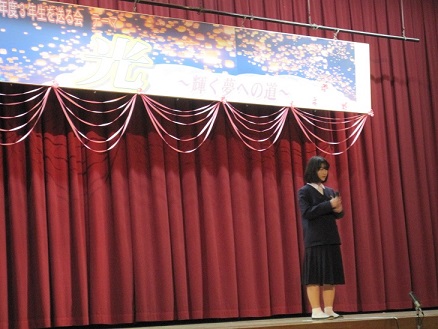 昨日の5・6時間目に3年生の卒業を祝う3年生を送る会を開催しました。今年のテーマは「光~輝く夢への道~」1年生からは歌と呼びかけ、2年生からはテーマを意識した劇パフォーマンスが披露されました。1年生2年生思い出映像で3年生の3年間を振り返り、記念品をプレゼント。3年生からもお礼の歌を披露されました。3年生3年生の卒業まであと少し。手作りの送る会を開催し、生徒全員で思い出に残る時間を過ごすことができました。