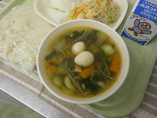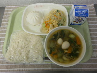広東麺 彩の国肉まん 中華サラダ 牛乳