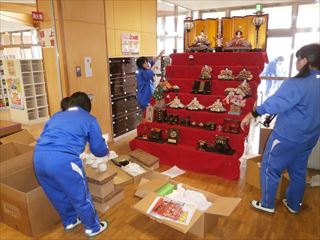 をしてくれました。校庭の側溝の土をさらったり、体育小屋の掃除やお雛様の