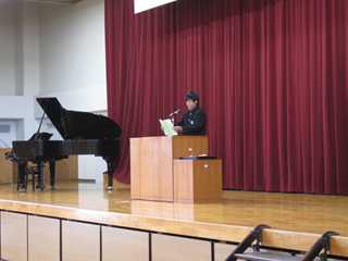 また、教科書授与では、代表の2年生・阿部さん、3年生・池田さんに新しい教科書が渡されました。