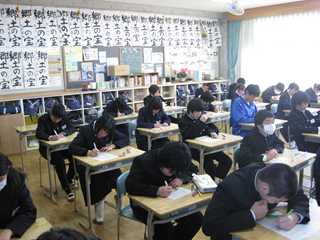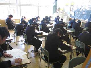 平成23年度の最後の定期テストです。どのクラスからも真剣に取り組んでいる姿が、見られることや鉛筆の走る音が響く様子が、とても印象的でした。試験勉強は大変ですが、是非、一問でも多く解答してください。