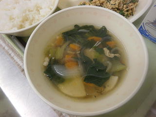 <ゴーヤチャンプルー> <もずくスープ>