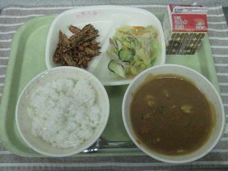 シーフードカレー 大豆とごぼうの甘辛揚げ