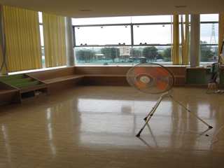 (教室ではエアコンを活用しています。しかし、廊下も暑いので扇風機も活用しています。)