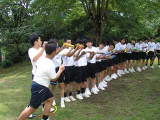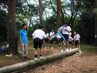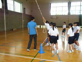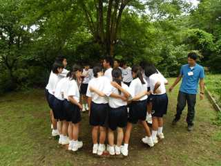 げんきプラザの指導員の方々による、オリエンテーションのあと体育館での実技を行ったり、その後野外で、実際のアドベンチャープログラムを行いました。とても楽しく、日頃使っていない筋肉などを動かして競技を行いました。みんな元気で頑張っていました。ご苦労様でした。