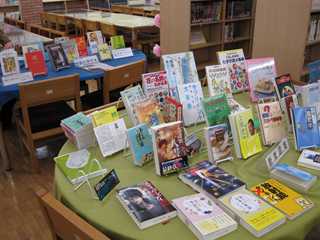 ★綺麗にデススプレイされた本の紹介と昼休みに利用している生徒たち