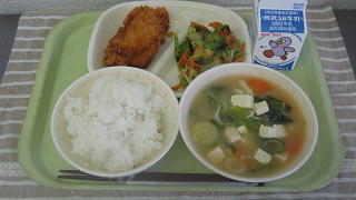 かつ丼 じゃこおかかあえ みそ汁 牛乳