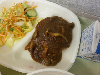 本日の給食 ハンバーグデミグラスソース