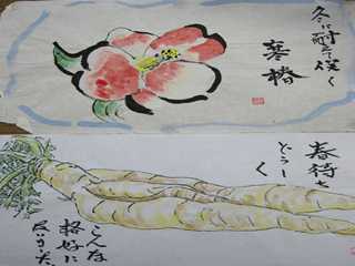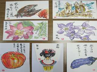 感動の一言でありました。そして、今回は、地元の河田 様から「絵手紙」をお借りいたしました。その数大小合わ