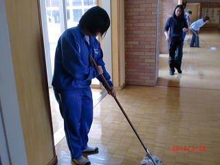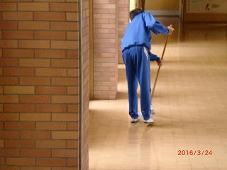 今日は廊下をワックスがけしました。生徒達は本校職員と力を合わせながら
