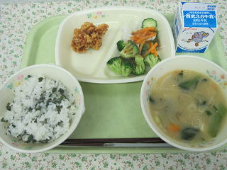 わかめご飯 鶏の唐揚げ 和風サラダ