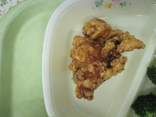 給食の唐揚げは、鶏のむね肉を使っています。