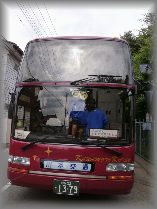 1年生は、神川げんきプラザでのアドベンチャープログラムの体験に向けて9:00に出発しました。