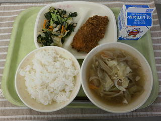勝つ丼 磯の香あえ ちゃんこスープ 牛乳
