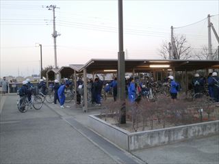 放送委員会の下校放送とともに、一斉に部活動を終えて、急いで駐輪場にやってきます。