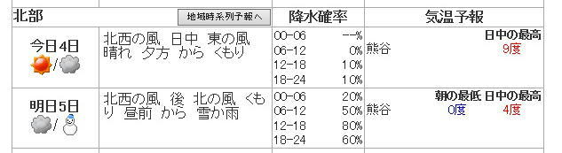 熊谷気象台の天気予報発表(2/4/午前5時)