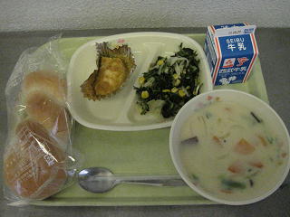 今日は、豊里幼稚園のみなさんが給食を食べに来てくれました。
