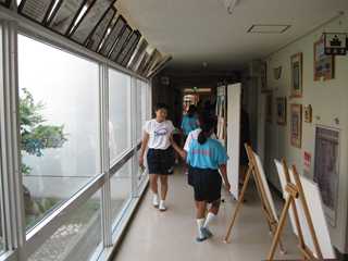 夏休みの清掃活動は、各クラスが分担して行っています。今日(9日)は、1-2が