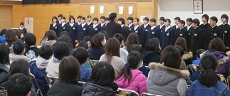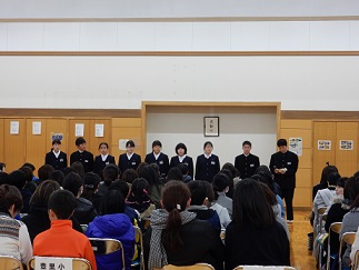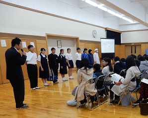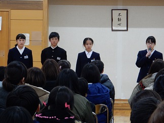 生徒会では、始めに豊里中校歌を紹介しました。