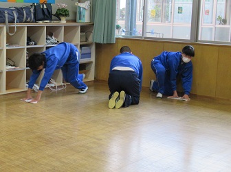 2学期もあと3日。今日は美化委員会のみなさんが教室のワックスがけをしてくれました。