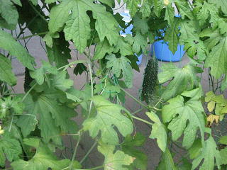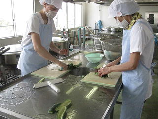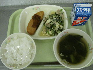 白飯 ささみチーズフライ わかめスープゴーヤチャンプルー 牛乳「ゴーヤ」という名前は、沖縄で使われている名前で、「ツルレイシ」や「にがうり」といいます。沖縄や九州南部では、昔から食べられていましたが、全国に普及したのは1990年代になってからです。ゴーヤの苦味が苦手な人も多いと思いますが、この苦味成分には食欲増進作用があるといわれ、夏バテ予防にも効果が期待できます。豊中の中庭には、ゴーヤの緑のカーテンがありますが、そのゴーヤも今日の給食に少し使わせていただきました。調理員さんたちも、冷房がない中、美味しい給食を作るのに頑張っています!!