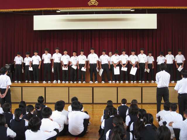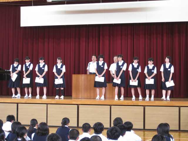 本日(7/10)の朝会は、これまでの各種大会等の表彰を行いました。