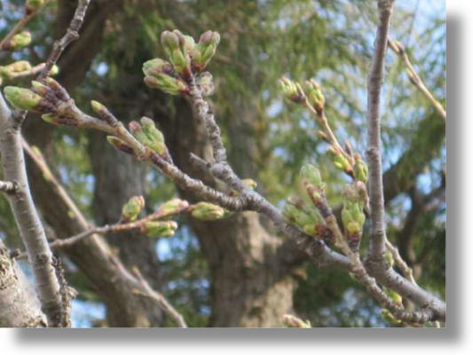 さて、校庭の桜の蕾(つぼみ)も、いよいよふくらんでまいりました。もう間もなく、「開花」宣言が出せるかと