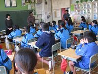 本校では、新入生がスムーズに小学校から中学校の生活に移行できるよう、小学校において、「出前授業」を行っています。
